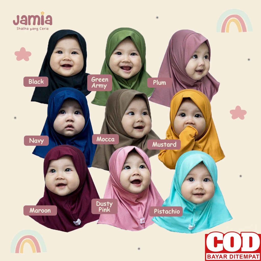 JILBAB Renda by JAMIA Jilbab ini terbuat dari bahan Jersey Premium, adem juga lembut. nyaman di kenakan buah hati umma i.allah 😀 PILIHAN WARNA :